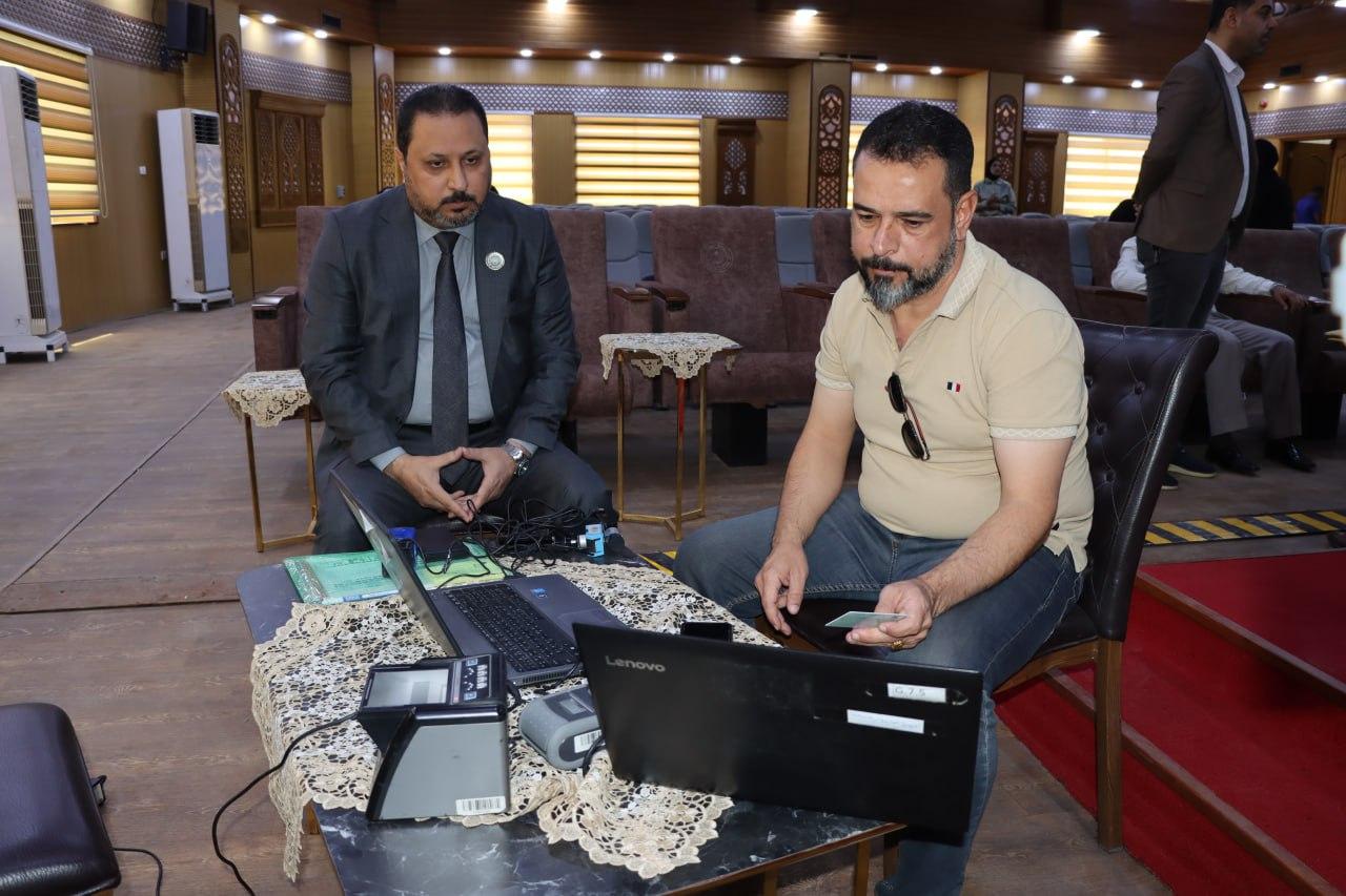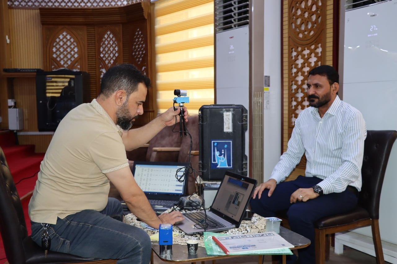تفقد رئيس جامعة البصرة الدكتور مهند جواد كاظم اجراءات فريق المفوضية العليا المستقلة للانتخابات المتواجد في قاعة السياب لتحديث بيانات بطاقة الناخب لمنتسبي الرئاسة.