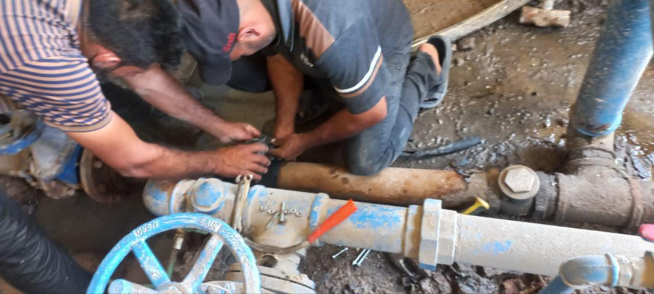 ملاكات جامعة البصرة تُنجز صيانة أنبوب ماء متآكل في محطة الضخ بباب الزبير