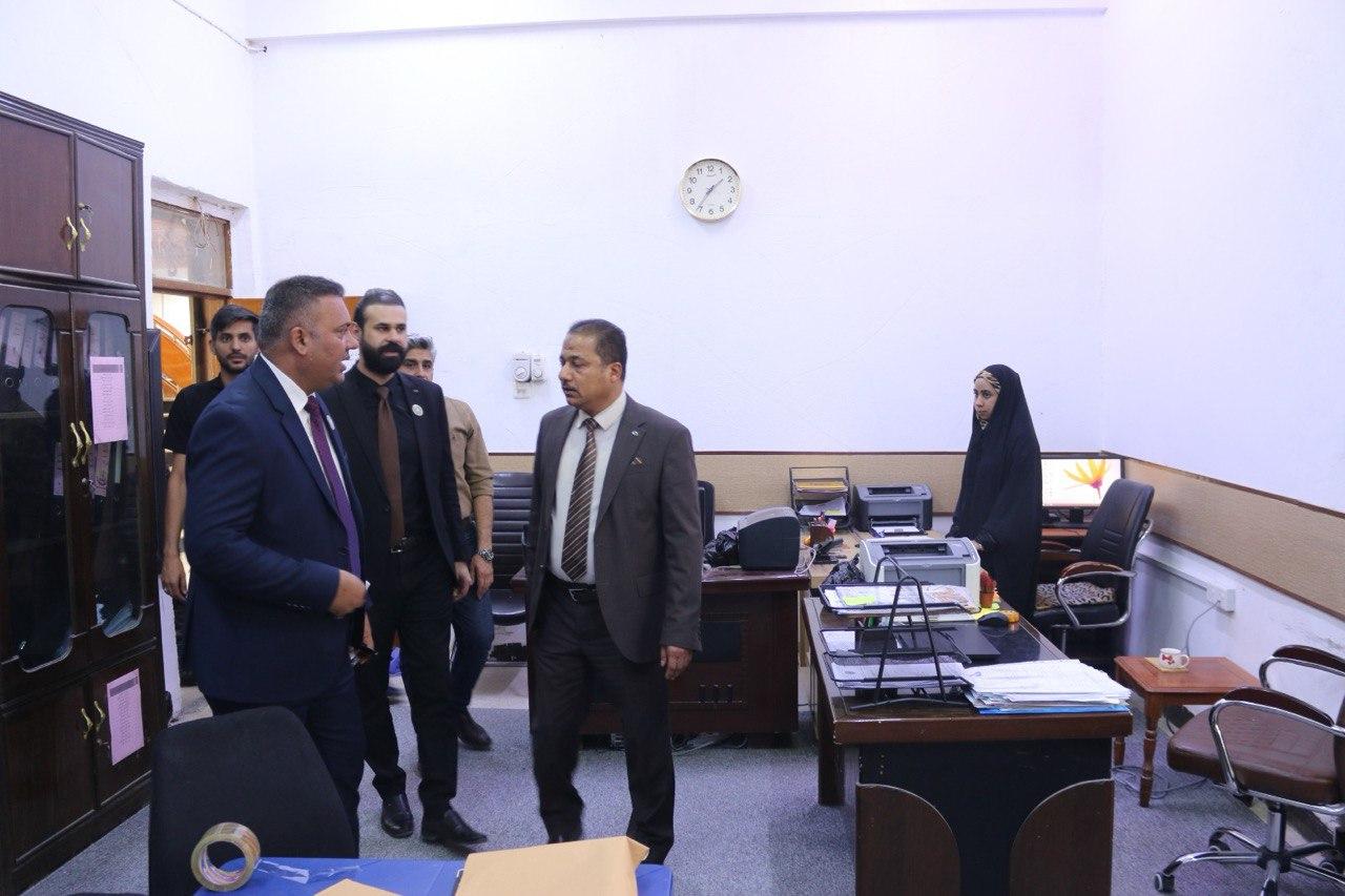 وتضمنت الزيارة جولة شملت القاعات ومكاتب المنتسبين واطلع على اهم الاحتياجات وكذلك ناقش مع المسؤولين سبل تطوير بيئة العمل وتحسين الخدمات المقدمة.