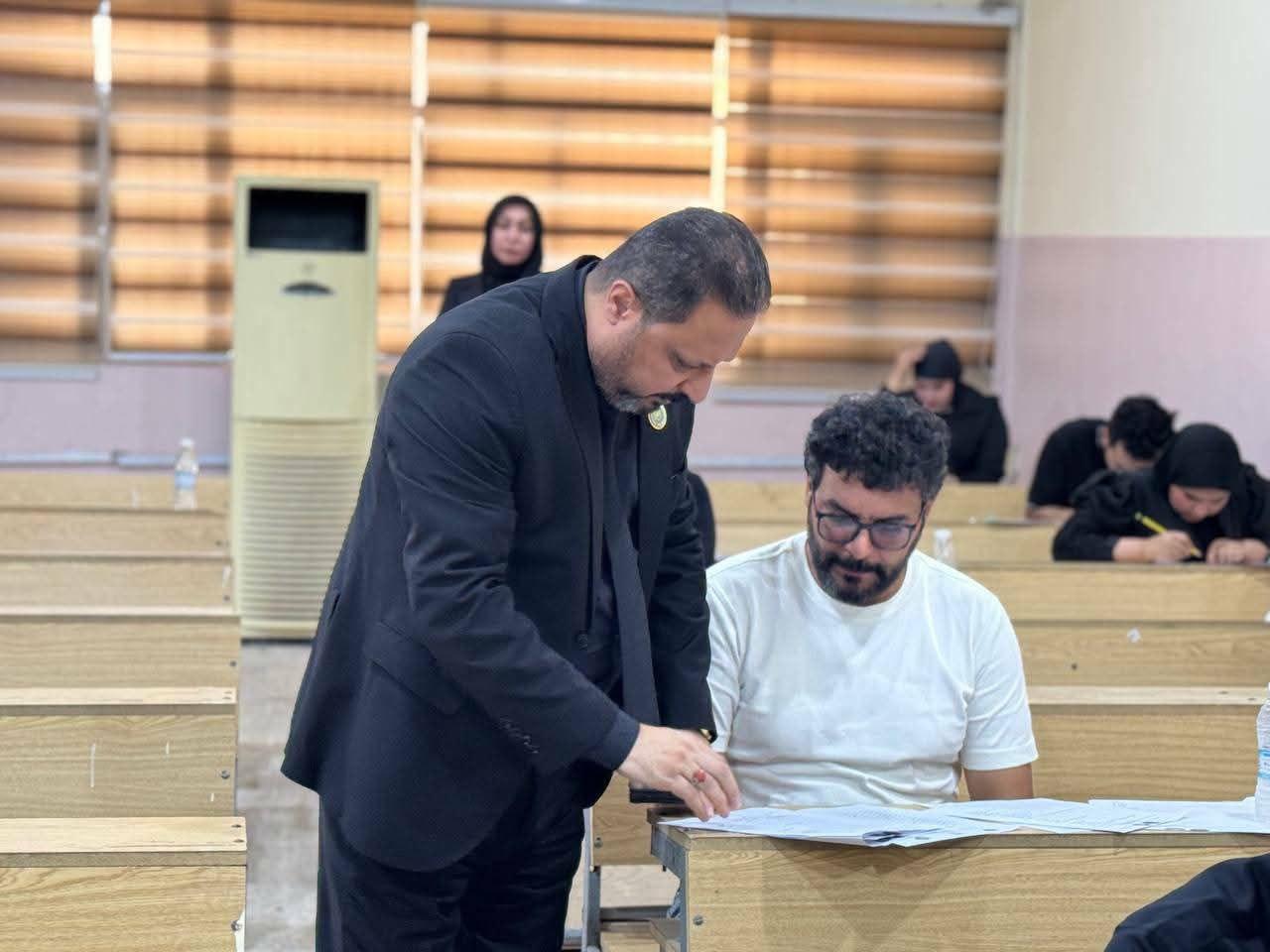تفقد رئيس الجامعة الدكتور مهند جواد كاظم سير الامتحانات التنافسية في كلية التربية البدنية وعلوم الرياضة للاطلاع على مجريات الامتحانات التنافسية للماجستير والدكتوراه للعام الدراسي 2025-2026.