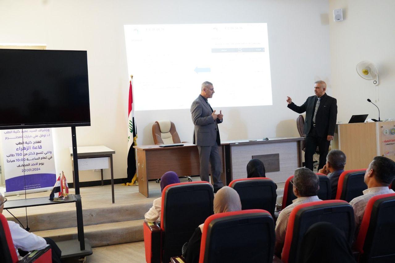 نظم قسم الجودة والاداء الجامعي في رئاسة جامعة البصرة ورشة عمل عن التصنيف العراقي للجامعات ونظرة عامة لإستمارة قياس درجة اداء الاقسام العلمية والتي أُقيمت في كلية الطب.
