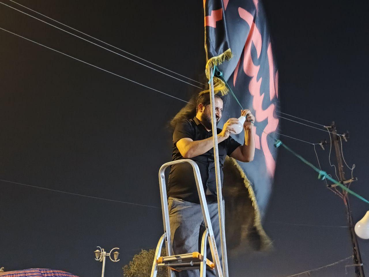ملاكات جامعة البصرة تباشر بربط إنارة موكب الجامعة لخدمة الزائرين