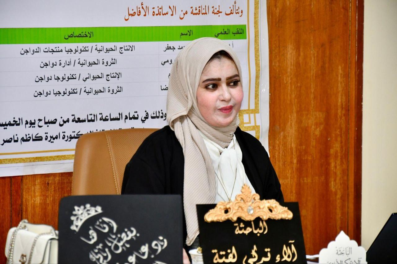 وهدفت الرسالة، التي قدمتها الطالبة آلاء تركي لفتة، إلى دراسة تأثير هذه المعززات الطبيعية في بعض الصفات الكيميائية والفيزيائية والميكروبية والحسية للحوم البط المخزنة بالتجميد.