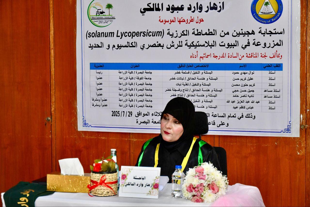 وهدفت الأطروحة التي قدمتها الطالبة أزهار وارد عبود إلى تحديد الهجين الأفضل من حيث الإنتاجية والملاءمة للظروف الجنوبية، وتحليل تأثير التراكيز المختلفة للكالسيوم والحديد المخلبيين على نمو النبات.