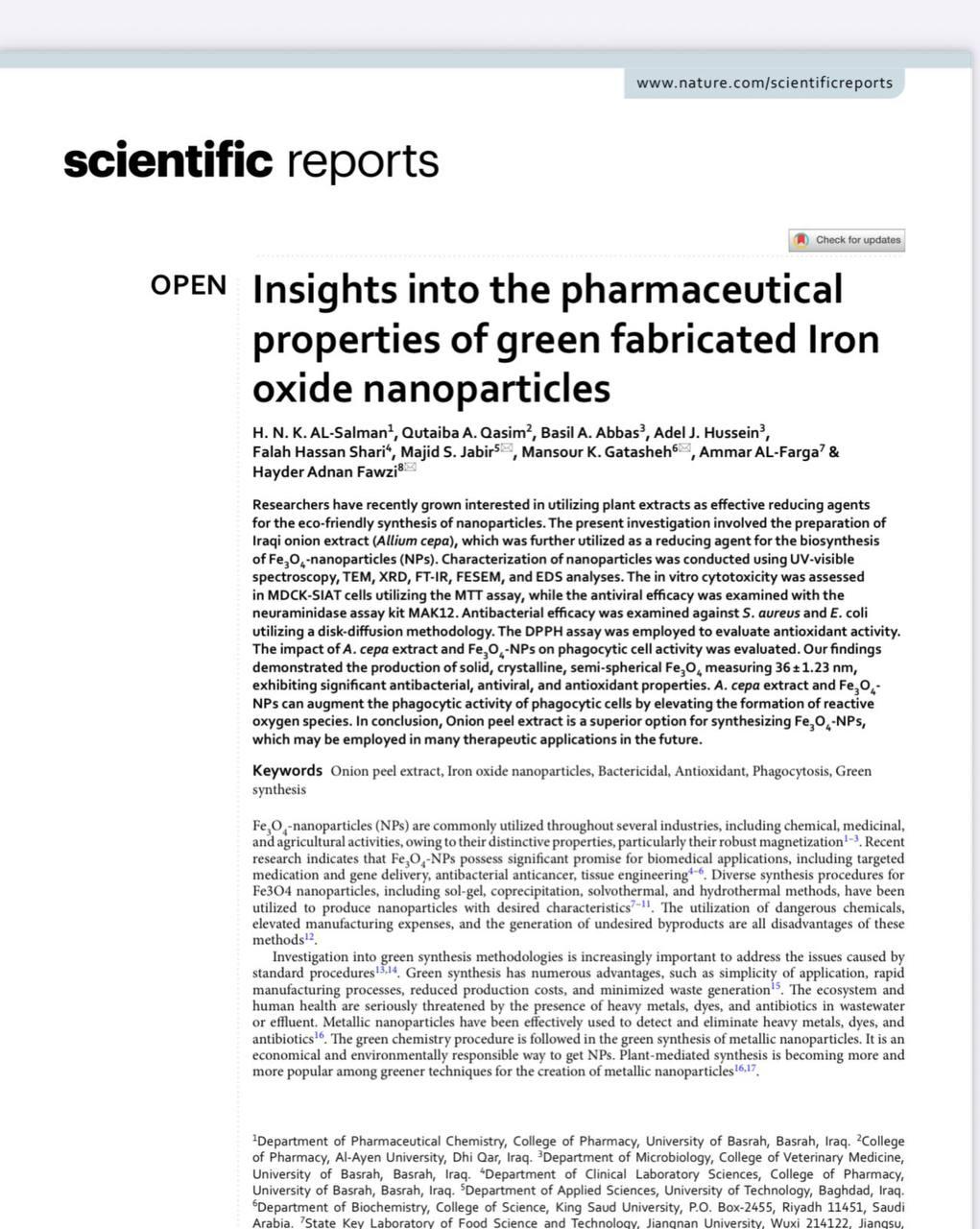 وتضمنت الدراسة التي تم نشرها في مجلة Scientific Report المصنفة ضمن مستوعب كلارفيت في الربع الأول Q1 وذات سايت سكور 6.7 ومعامل تأثير 3.9، الكشف عن مدى فعالية هذه المواد ضد الخلايا السرطانية والإصابات الجرثومية.