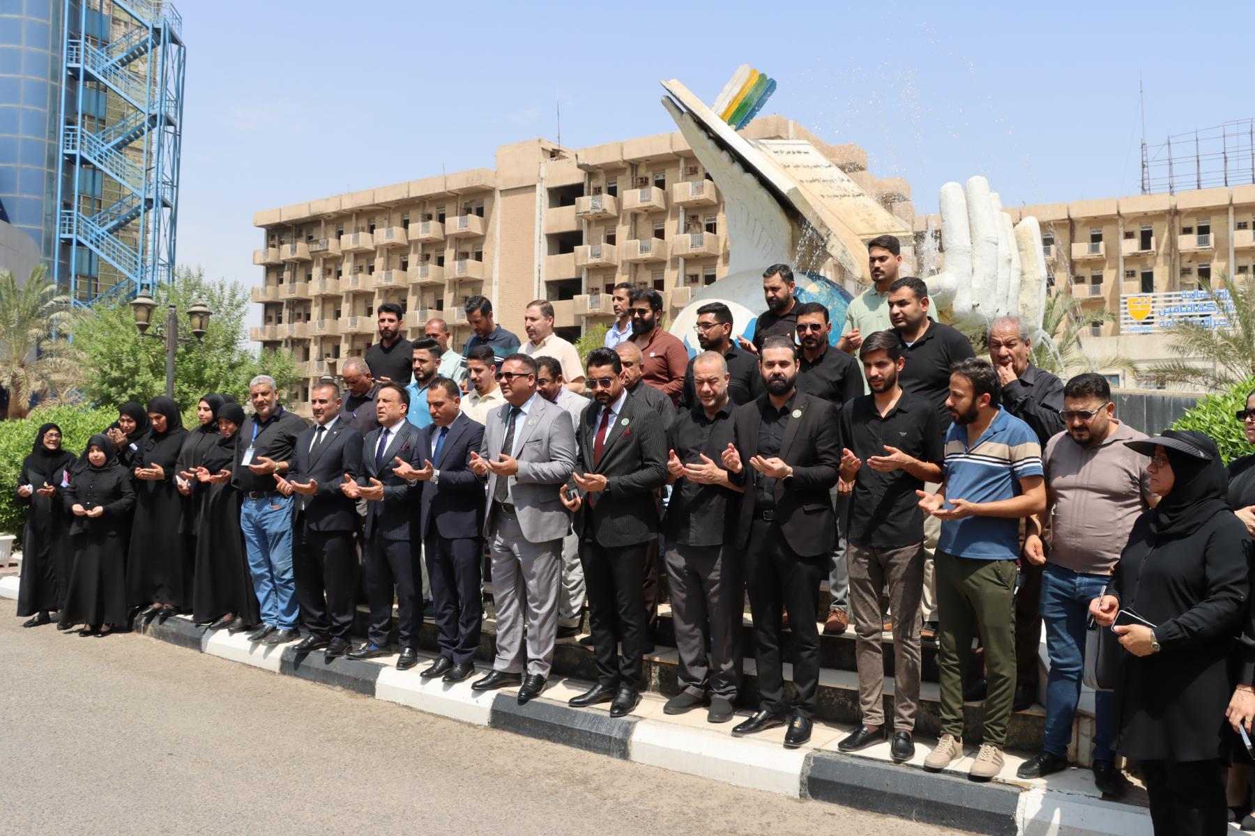 جامعة البصرة تنظم وقفة حداد ودقيقة صمت تخليداً لضحايا الابادة الجماعية