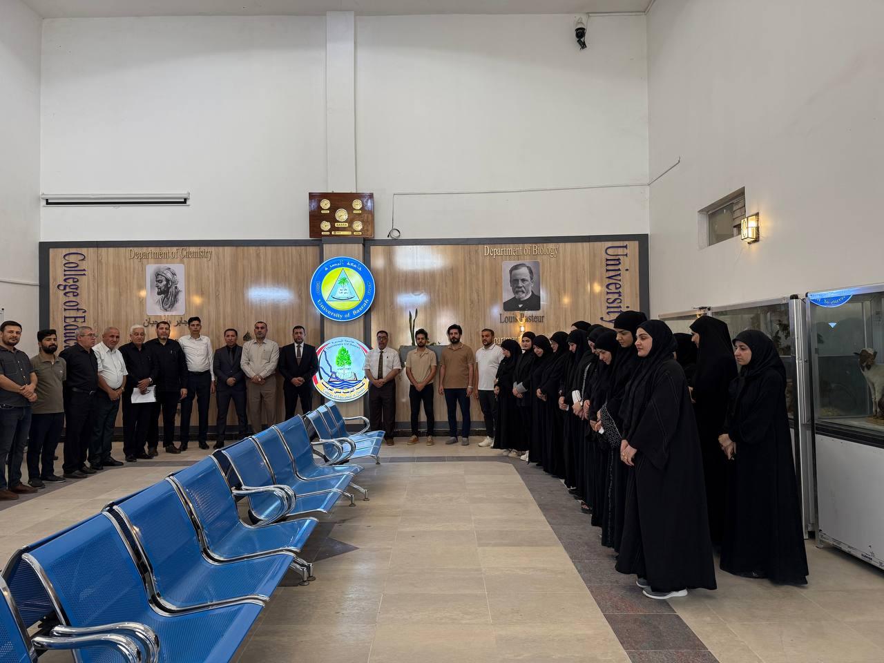 وقفت كلية التربية في القرنة بجامعة البصرة دقيقة صمتٍ وحداد، تخليداً لأرواح شهداء وضحايا الإبادة الجماعية بحق المكوّن الإيزيدي والمكونات الأخرى