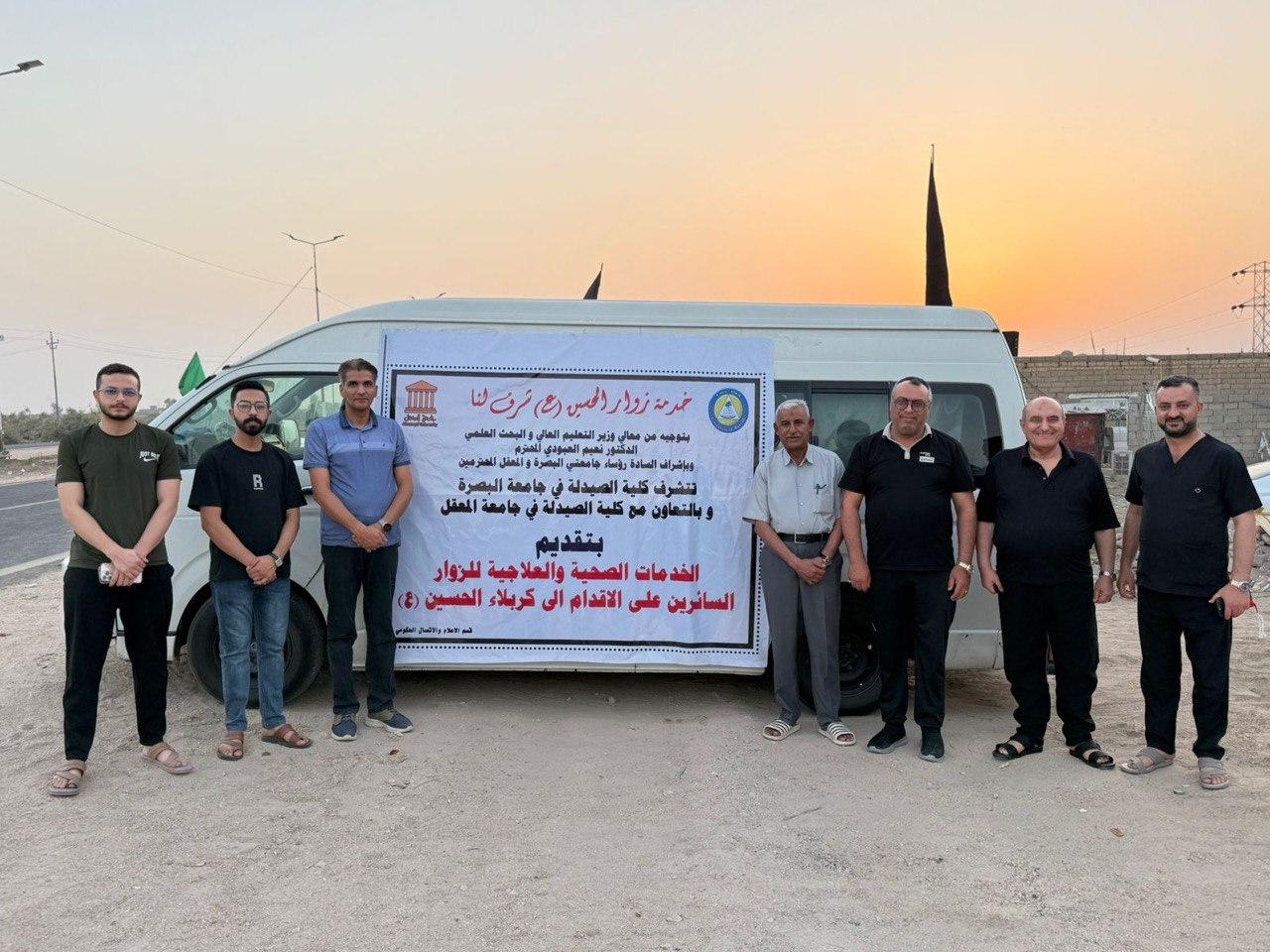 في إطار التزامها بالنشاطات المجتمعية والخدمية، خصّصت كلية الصيدلة في جامعة البصرة، بالتعاون مع كلية الصيدلة في جامعة المعقل، مفرزة طبية على الطريق الرابط بين محافظتي السماوة والناصرية، وذلك لتقديم الخدمات الصحية والعلاجية للزائرين المتوجهين سيراً على الأقدام إلى كربلاء المقدسة بمناسبة أربعينية الإمام الحسين (عليه السلام).