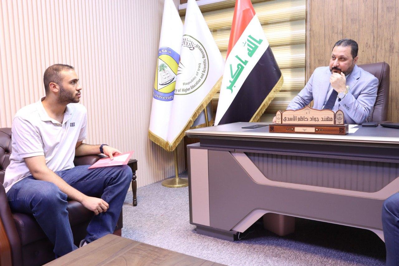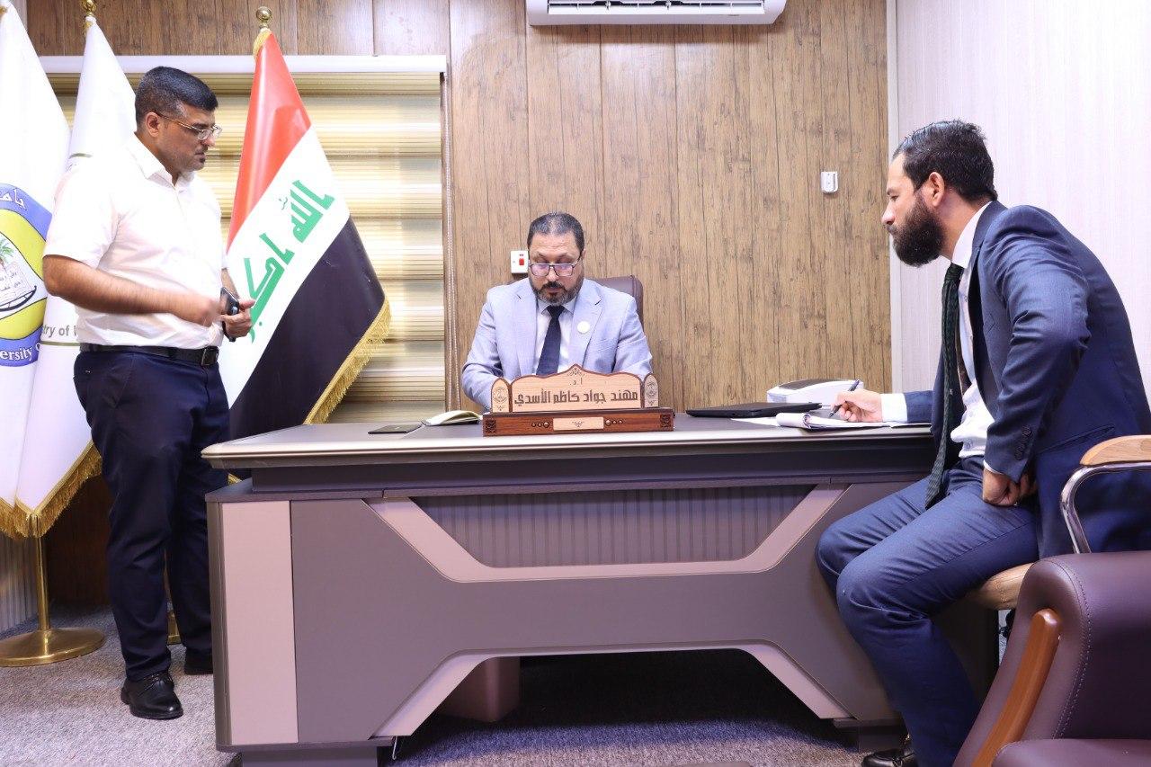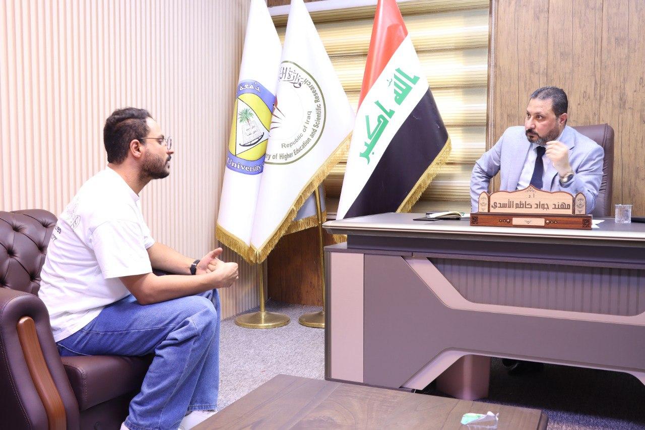 وقد أكد الأسدي خلال اللقاء على أهمية التواصل المباشر مع جميع منتسبي الجامعة والمستفيدين من خدماتها، معتبراً إياه أساساً لعمل الإدارة ووسيلة فعالة لحل المشكلات بشكل فوري.