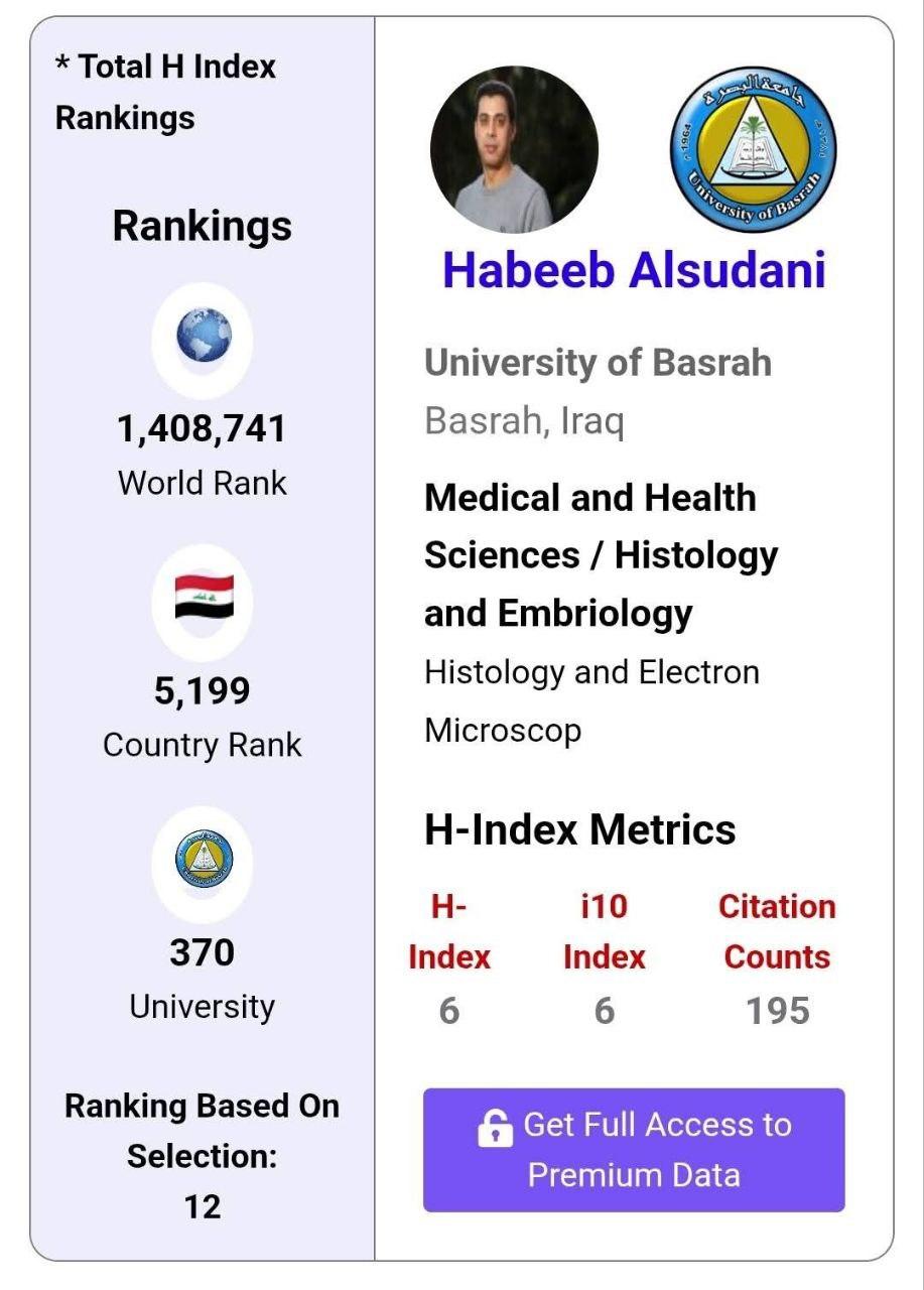 وقال الدكتور حبيب ، ان هذا التصنيف في منصة عالمية مرموقة تُعنى بتصنيف أكثر من 2.6 مليون باحث و24,500 مؤسسة في 221 دولة، اعتماداً على الإنجازات العلمية التي حققها الباحثون خلال السنوات الخمس الأخيرة، اذ تم إدراجه ضمن أفضل 66 باحثاً عراقياً في تخصص العلوم الطبية والصحية في علم الأنسجة والتشريح ، وشغل المرتبة 12على مستوى العراق في هذا التخصص، وحصل على المرتبة 277 عالميا ضمن المجال نفسه، مما يجعله واحداً من أبرز الأسماء الأكاديمية في هذا المجال.