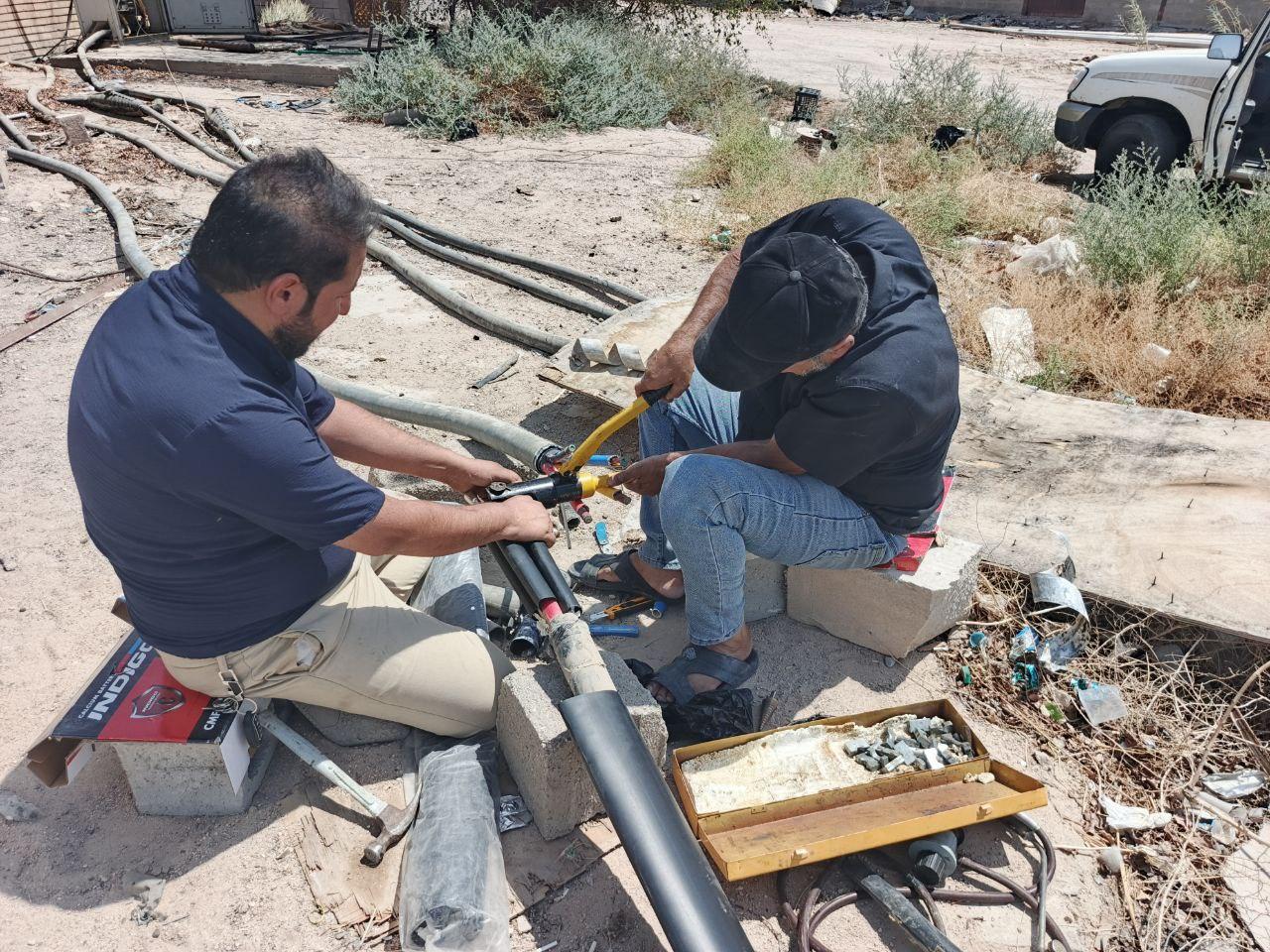 ملاكات جامعة البصرة تعيد خط الكهرباء إلى الخدمة