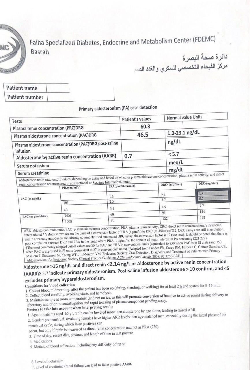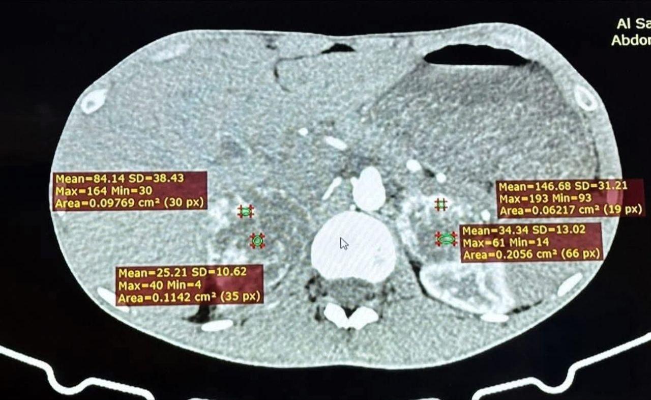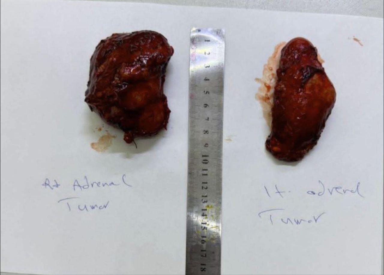 وتضمنت العملية استئصال الغدتين الكظريتين اليمنى واليسرى لمريض يبلغ من العمر (23) عاما من محافظة البصرة، كان يعاني من ارتفاع شديد في ضغط الدم وتسارع حاد في ضربات القلب، وبعد إجراء الفحوصات الطبية تبين وجود ورمين كبيرين في كلتا الغدتين الكظريتين يفرزان هرمون الأدرينالين بنسبة مرتفعة جدًا (Bilateral pheochromocytoma) مما شكل خطرا كبيرا على حياته.