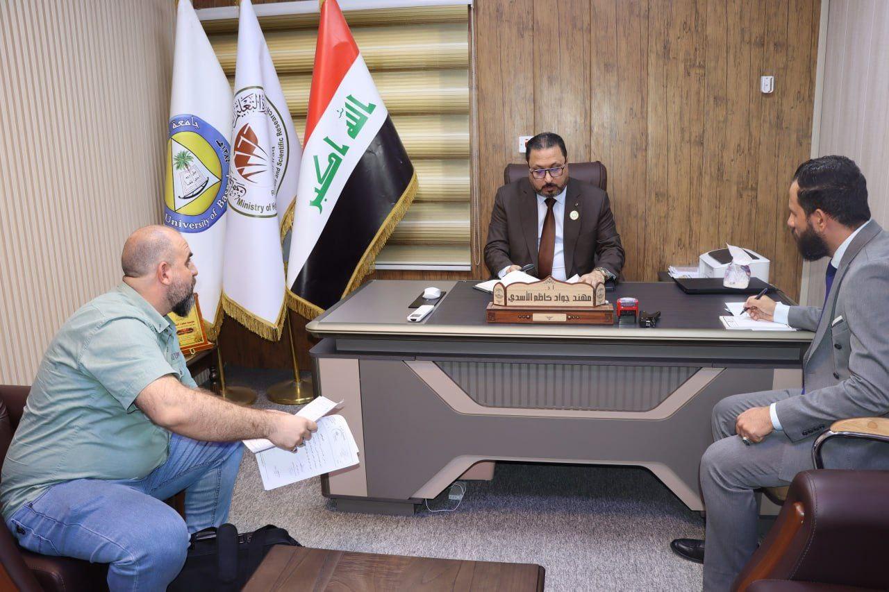 استقبل رئيس جامعة البصرة، الدكتور مهند جواد كاظم الأسدي، مجموعة من المواطنين والموظفين للاستماع إلى مشاكلهم وتلبية طلباتهم.