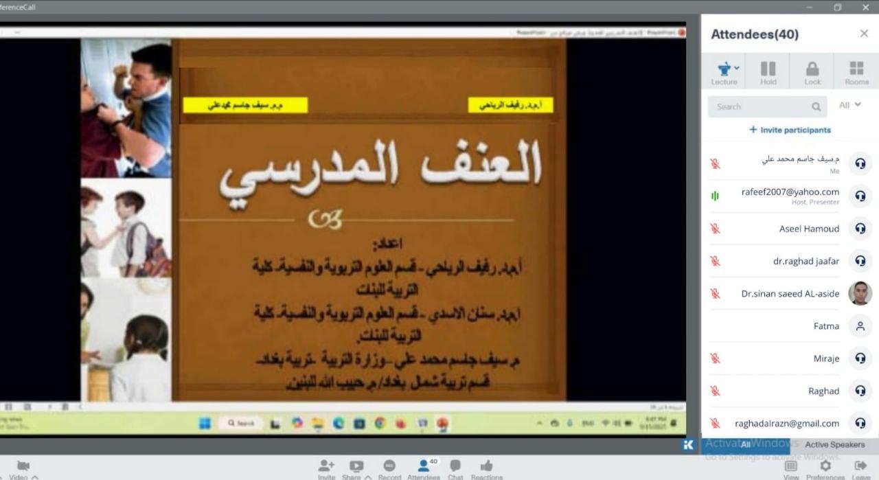 نظم مركز التعليم المستمر في جامعة البصرة، بالتعاون مع كلية التربية للبنات، ندوة إلكترونية حول العنف المدرسي .
