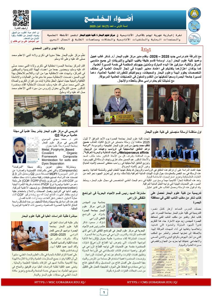 جامعة البصرة تصدر العدد السابع من نشرة "أضواء الخليج"