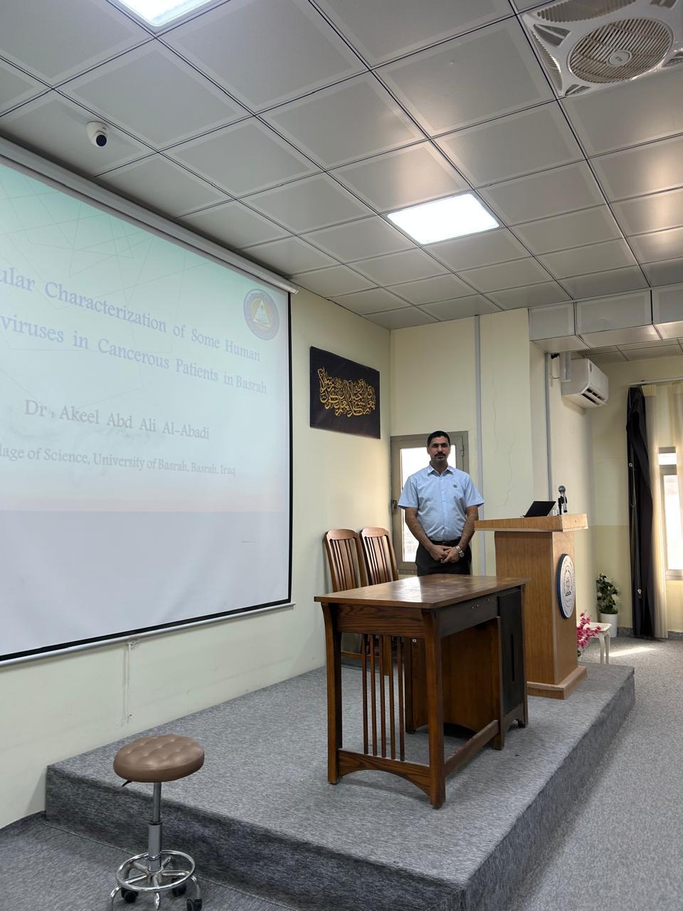 نظمت كلية العلوم بجامعة البصرة محاضرة علمية عن التوصيف الجزيئي لبعض الفيروسات الورمية البشرية لدى مرضى السرطان في البصرة.