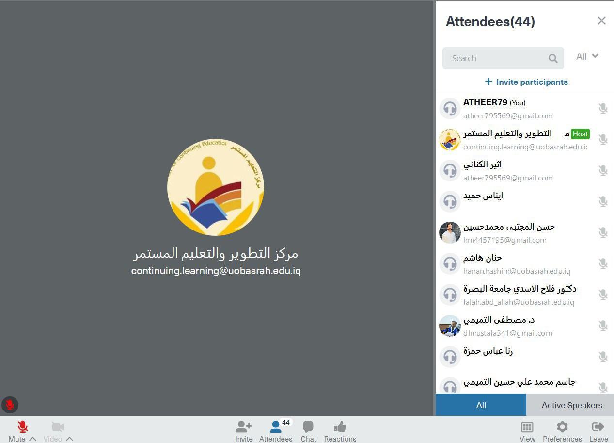 اقام مركز التعليم المستمر في جامعة البصرة ورشة إلكترونية بعنوان "حق المتهم في توكيل محامٍ للدفاع"، بمشاركة عدد من الأكاديميين والمهتمين بالشأن القانوني.