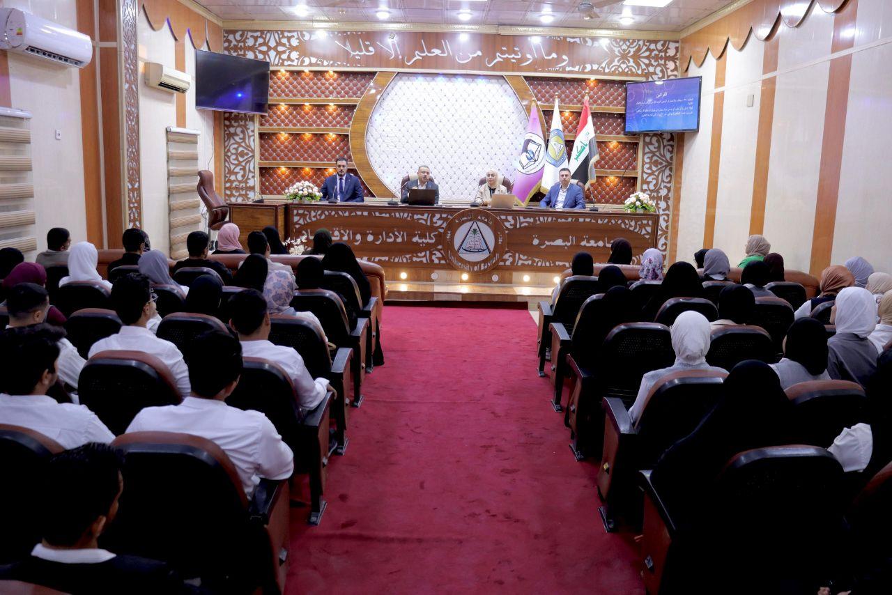نظّمت كلية الإدارة والاقتصاد بالتعاون مع مركز التطوير والتعليم المستمر بجامعة البصرة ندوة بعنوان "المخدرات بين القانون والإرشاد النفسي".