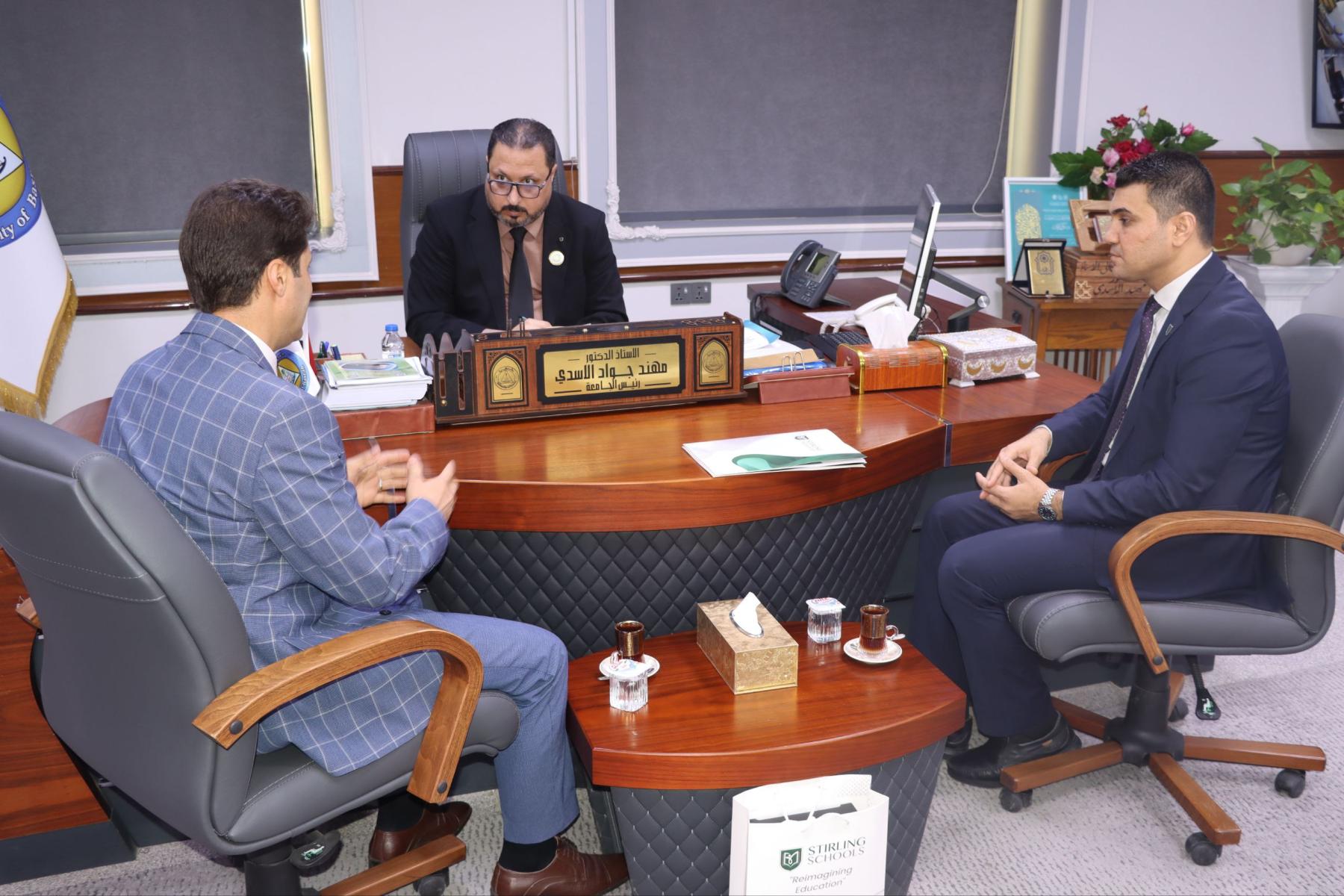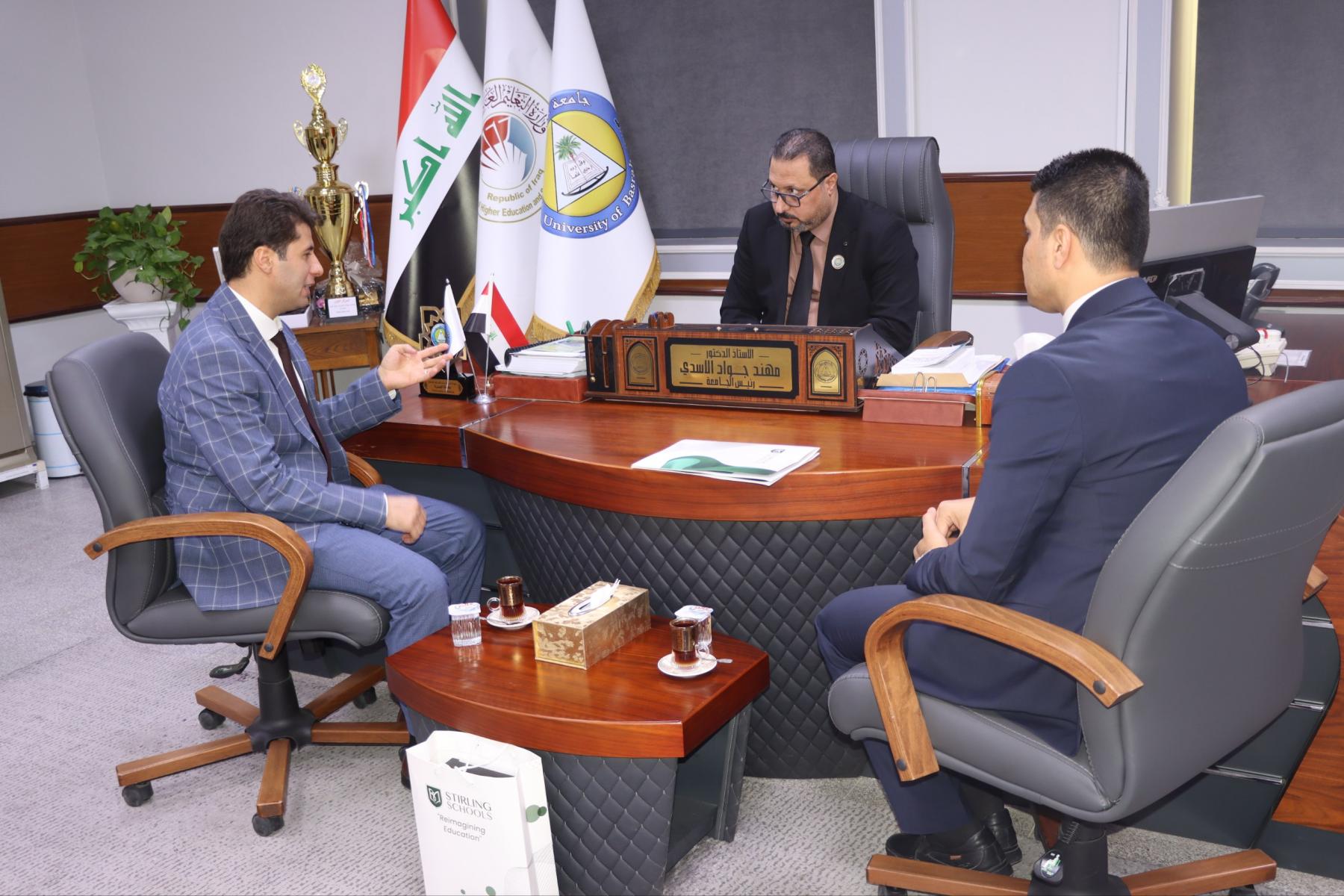 استقبل رئيس جامعة البصرة الدكتور مهند جواد كاظم الأسدي وفداً من مدارس إيشق التركية لبحث سبل التعاون العلمي والتربوي.