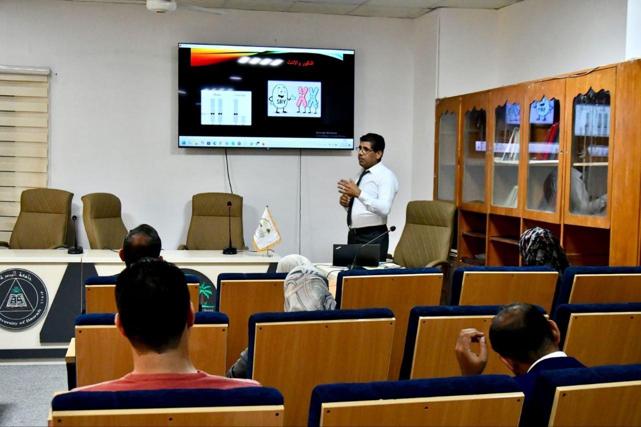 وتضمنت الورشة، التي حاضر فيها الدكتور صلاح مهدي السوداني، شرح الآليات الجينية المرتبطة بالكروموسومات الجنسية وكيفية تأثير بعض الظروف البيئية والتقنيات المخبرية على تحديد جنس المولود.
