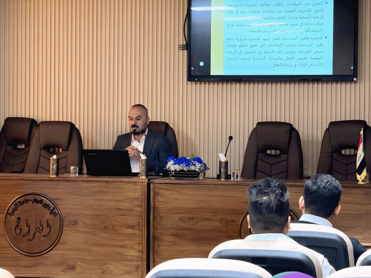 نظمت كلية علوم البحار في جامعة البصرة ورشة عن الوصمة المجتمعية لمدمني المخدرات وتأثيراتها على الاندماج المجتمعي.