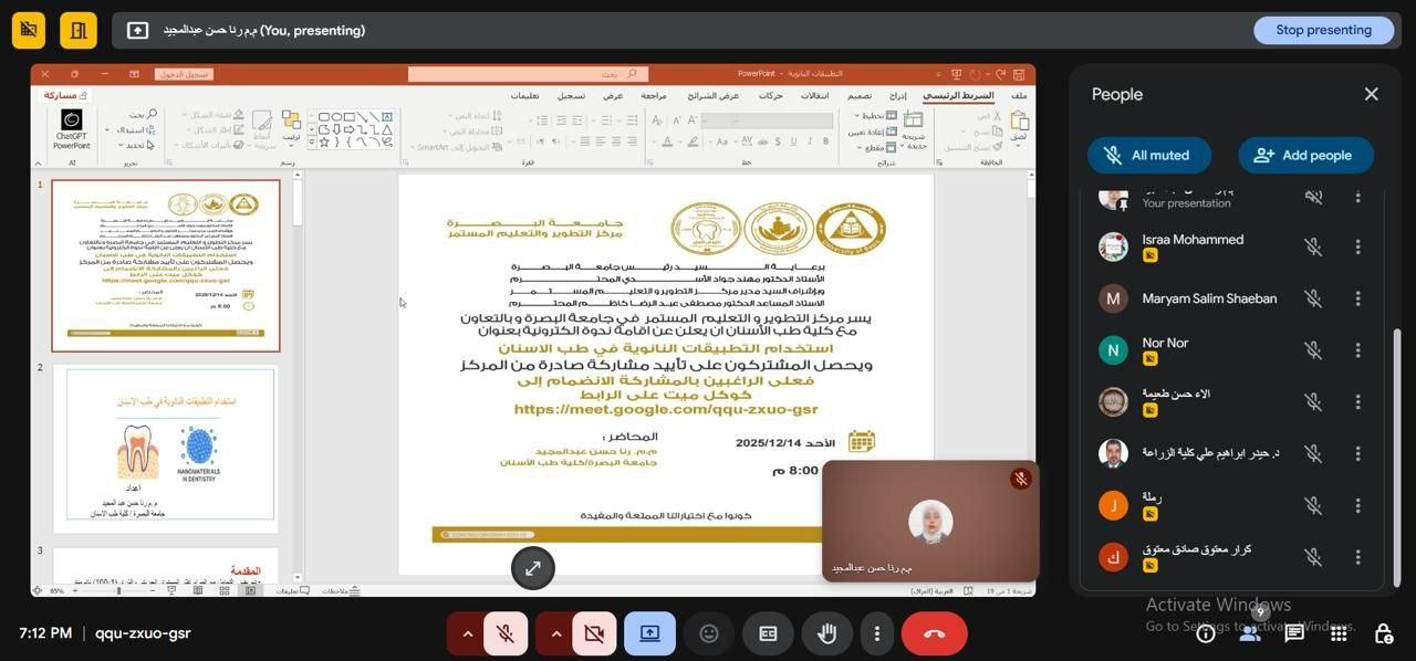 جامعة البصرة تقيم ورشة إلكترونية عن استخدام التطبيقات النانوية في طب الأسنان