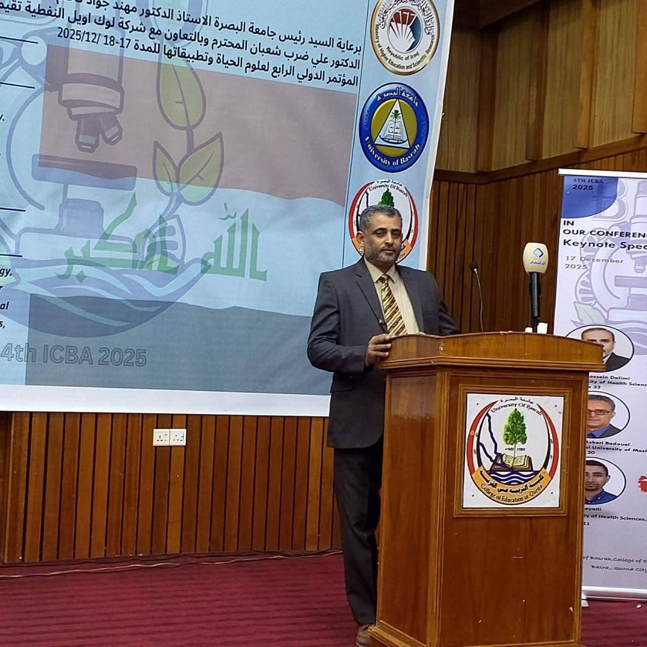 شارك التدريسي في مركز علوم البحار بجامعة البصرة الدكتور زهير علي عبد النبي في المؤتمر الدولي الرابع لعلوم الحياة وتطبيقاتها الذي عقد في كلية التربية قرنة.