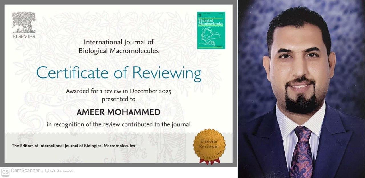 وأوضح الدكتور امير عباس أن المجلة تعنى بالبحث في الجوانب الكيميائية والبيولوجية لجميع الجزيئات الكبيرة الطبيعية وهي ضمن مستوعبات كلارفيت وسكوبس من الربع الأول Q1 وذات عامل تأثير 8.5 وتصدر عن دار النشر العالمية Elsevier في هولندا.