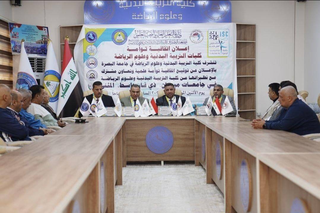 وقعت كلية التربية البدنية وعلوم الرياضة في جامعة البصرة اتفاقية تعاون علمي مشترك مع نظيراتها في جامعات ميسان وذي قار و واسط والمثنى.
