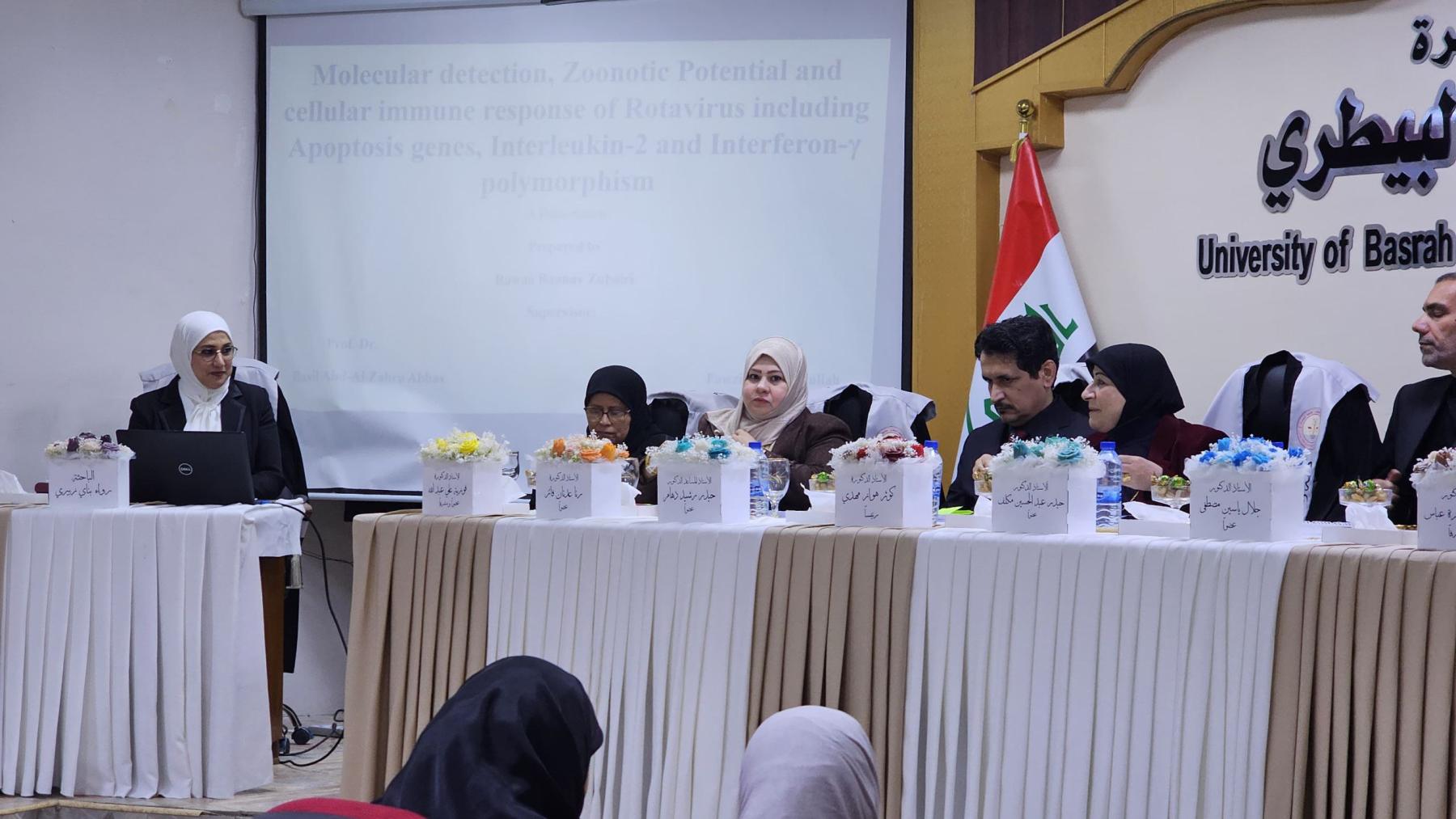 ناقشت كلية الطب البيطري بجامعة البصرة أطروحة دكتوراه حول "الكشف عن فيروس الروتا "A" وتحديد نمطه الجيني اعتمادًا على منطقة VP7".