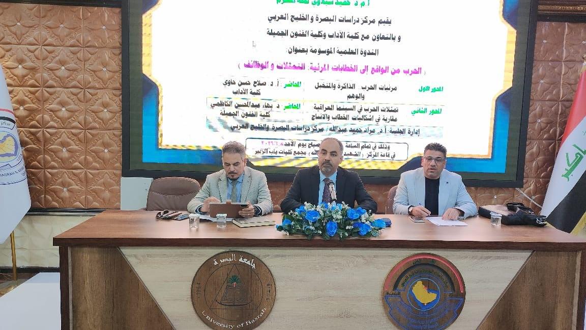 نظّم مركز دراسات البصرة والخليج العربي في جامعة البصرة ندوة علمية بعنوان (الحرب من الواقع إلى الخطابات المرئية: التمثلات والوظائف).