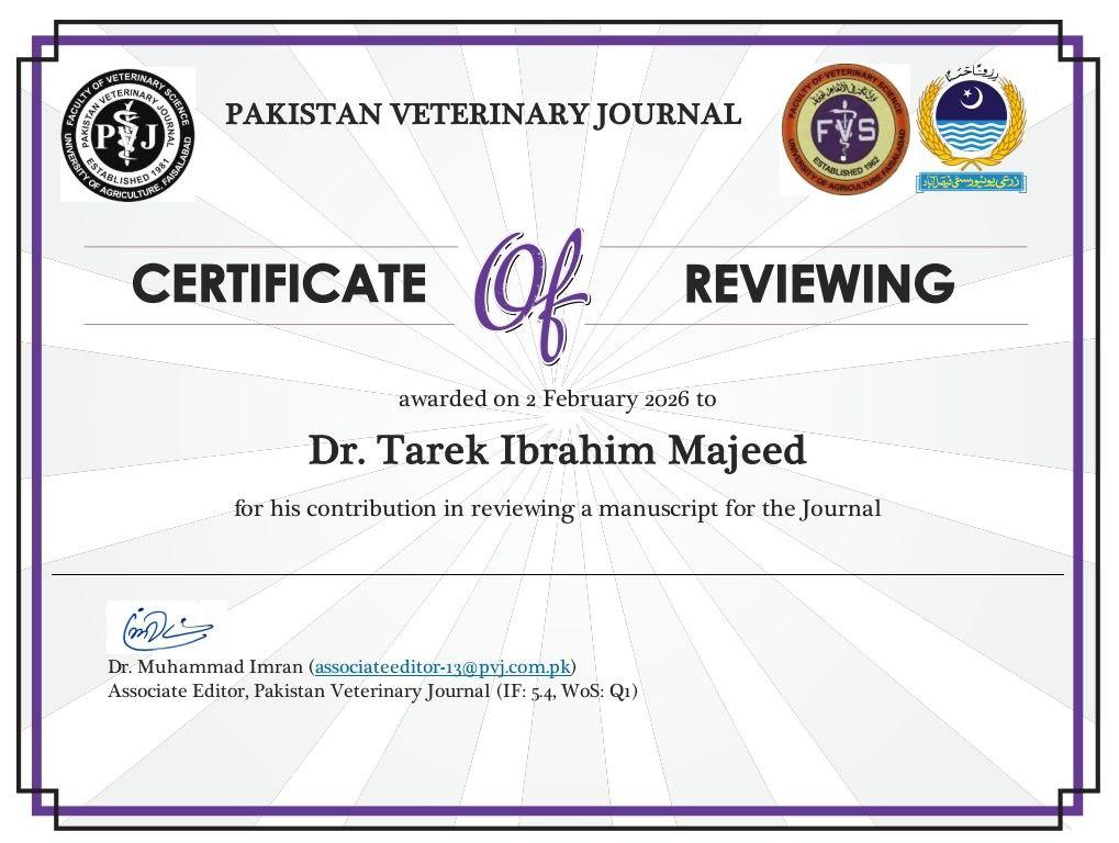 اختير التدريسي في كلية الزراعة بجامعة البصرة، الدكتور طارق إبراهيم مجيد، مقيماً علمياً لبحثٍ منشور في مجلة Pakistan Veterinary Journal ذات معامل تأثير (5.4)، والمصنفة ضمن مجلات الربع الأول (Q1) في قواعد البيانات العالمية الرصينة.
