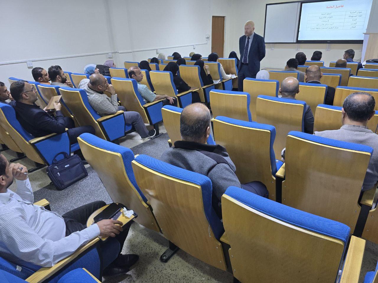 وتضمنت المحاضرة التي قدمها الدكتور سامر طالب داود، محاور منها مفهوم الجودة، وأهداف الجودة في التعليم، ومعايير الجودة في التعليم.