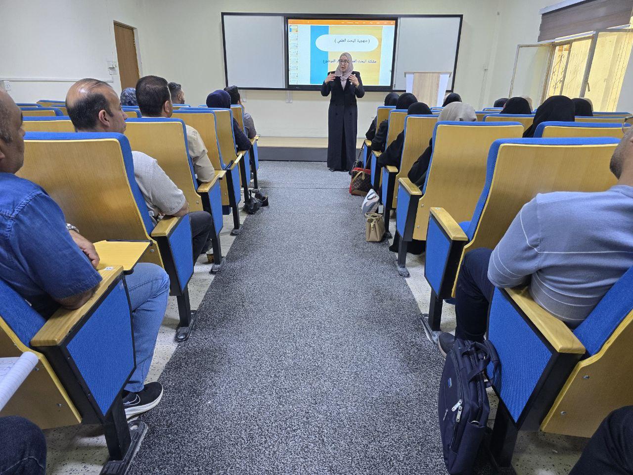 تضمنت المحاضرة، التي قدمتها التدريسية ثراء عبدالرسول حسن، تعريف البحث العلمي، وأنواع مناهج البحث العلمي، ومعايير البحث العلمي، وخطوات كتابة البحث.