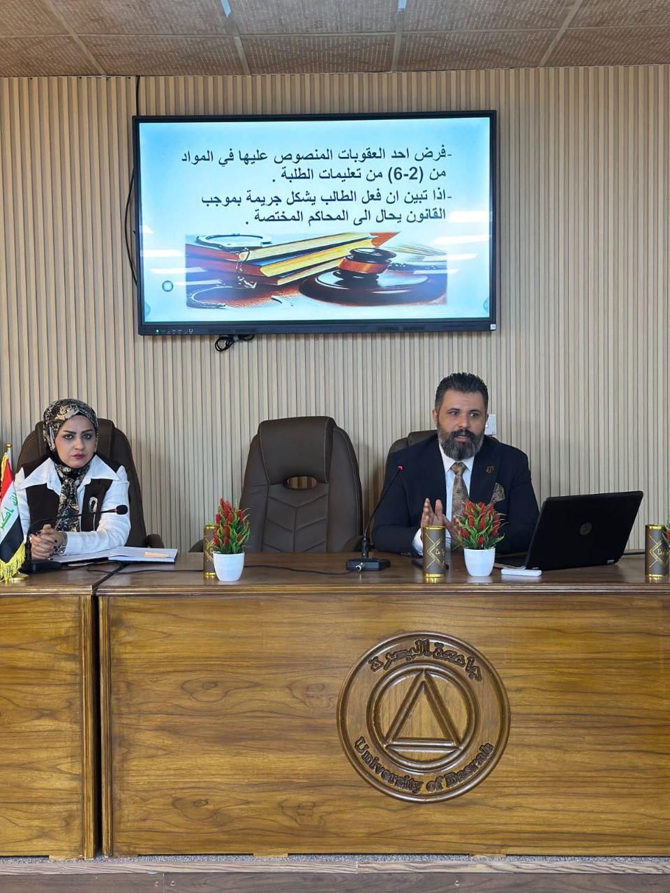 وتهدف الورشة إلى توعية الطلبة باهمية الانضباط الجامعي ورفع مستوى الوعي لديهم بمخاطر الابتزاز الالكتروني.
