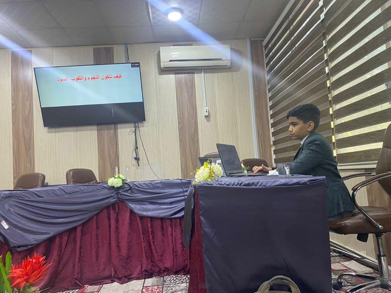 ضمن برنامج الجامعة لاستقطاب المواهب العلمية استضافت كلية التربية للعلوم الصرفة في جامعة البصرة التلميذ الموهوب في الصف الخامس الابتدائي بمدرسة الشهيد السعيد الطالب(محمد رضا احمد جاسم) لالقاء محاضرة علمية حول(تكون النجوم والثقوب السود).