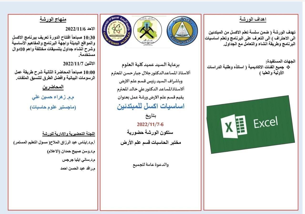 نظمت كلية العلوم في جامعة البصرة دورة عن اساسيات استخدام اكسل للمبتدئين .
