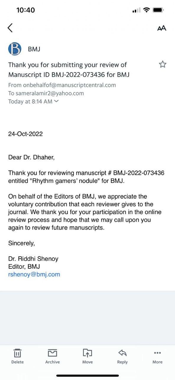 اختير التدريسي في كلية الطب بجامعة البصرة الاستاذ الدكتور سامر عبد الامير ظاهر كمقوماً علمياً في مجلة British Medical Journal البريطانية المصنفة ضمن مستوعبات سكوبس. جاء ذلك نظراً لمساهماته في نشر وتقييم البحوث العلمية ضمن المستوعبات العالمية حيث تم تقييم بحث بعنوان : Rhythm gamers nodule