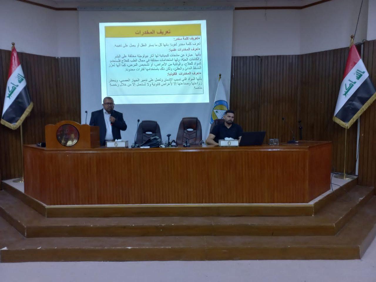 نظمت وحدة العلاقات والتواصل التابعة لقسم المتابعة بجامعة البصرة ندوة علمية عن أبعاد ومعالجة ظاهرة المخدرات وأثرها على الفرد والمجتمع بالتعاون مع دائرة صحة البصرة والشرطة المجتمعية.
