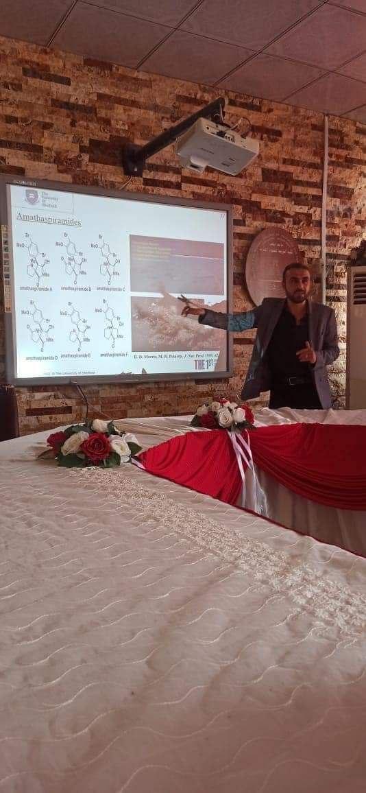 نضمت كلية التربية للعلوم الصرفة بجامعة البصرة ورشة عمل عن (المنتج الطبيعي اماثاسبيراميد: كمرشح دوائي محتمل لبعض امراض بروتين البريون).