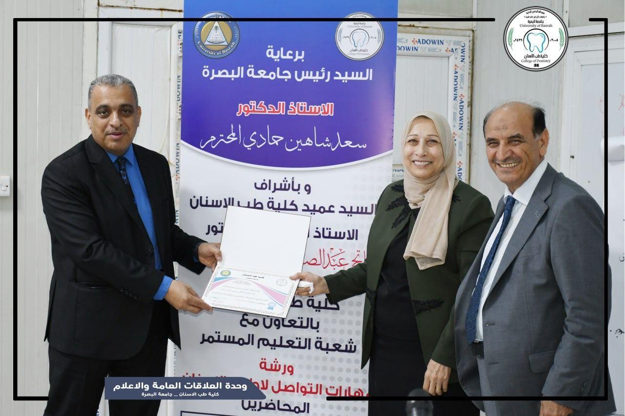 نظمت كلية طب الاسنان في جامعة البصرة ورشة بخصوص مهارات التواصل لاطباء الاسنان شارك فيها أطباء أسنان من مختلف المؤسسات الصحية في محافظة البصرة .