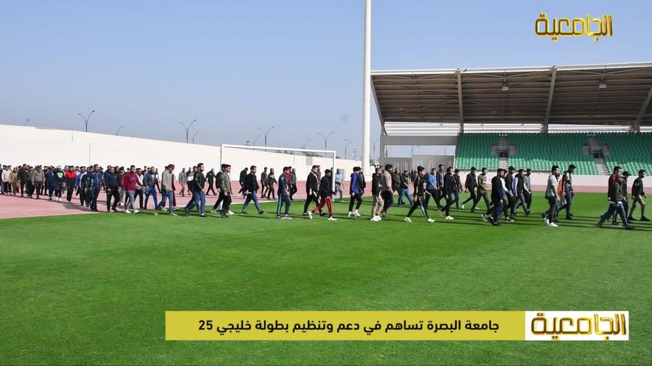 ساهمت جامعة البصرة متمثلة بمسؤوليها وفرقها التطوعية المكونة من ١٧٠٠ طالب وطالبة في دعم وتنظيم بطولة كأس الخليج العربي بنسخته الخامسة والعشرين المقرر اقامتها على ملاعب مدينة البصرة يوم الجمعة المقبل.