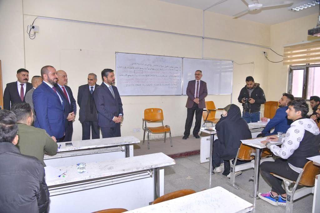 تابع وزير التعليم العالي والبحث العلمي الدكتور نعيم العبودي سير الامتحانات النهائية للفصل الدراسي الأول في أقسام الجامعة التكنولوجية.