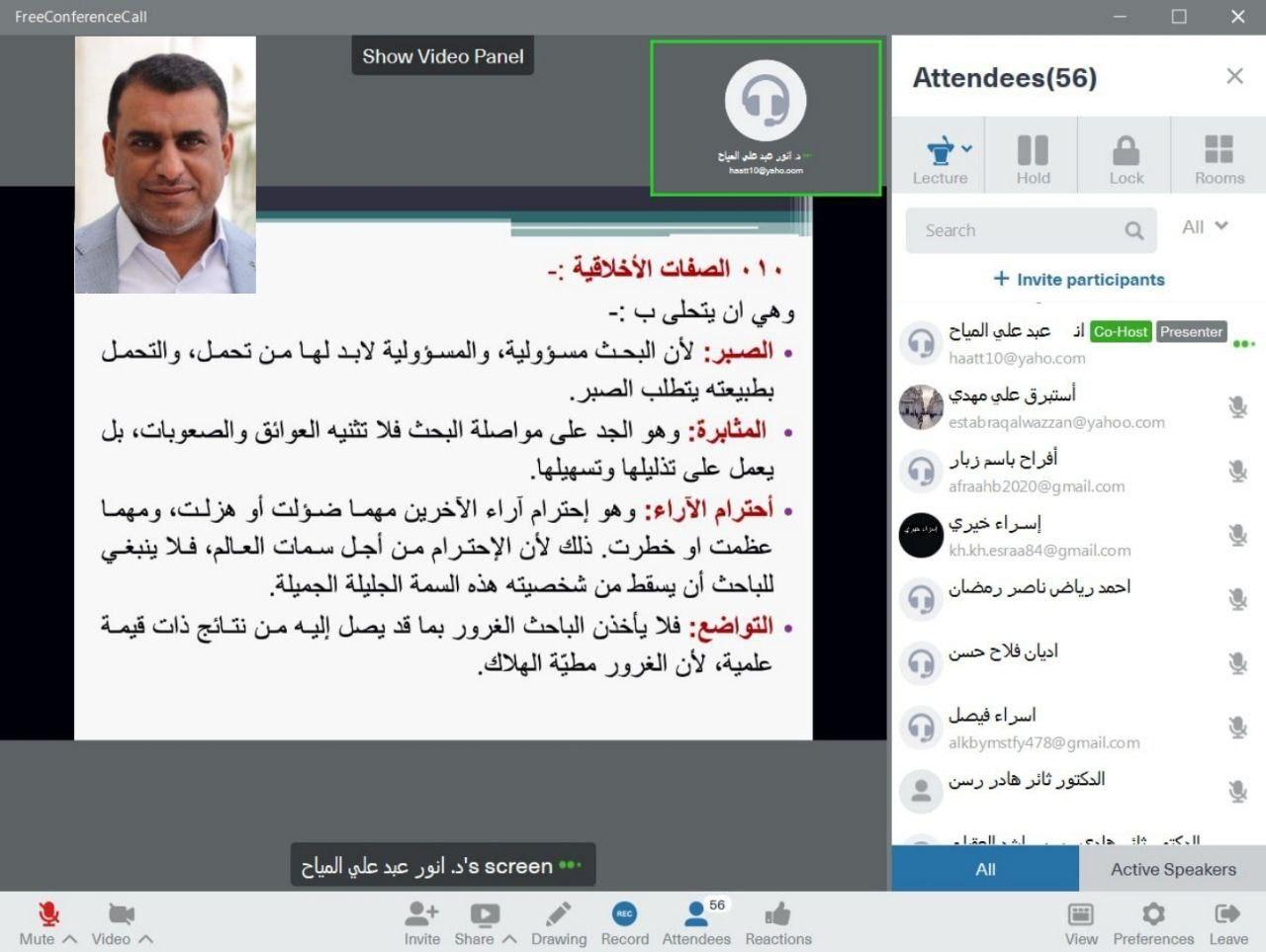 وفي النهاية كانت التوصية بضرورة الاستمرار بالدورات التدريبية حول منهج البحث العلمي للتدريسيين بحسب احتياجاتهم.