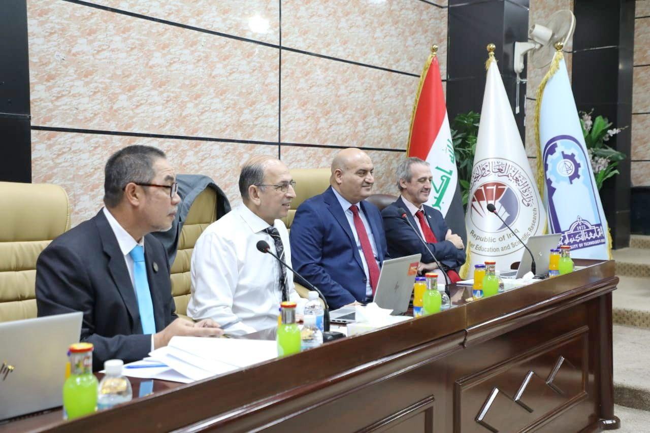 وناقش خبراء الوفد الدولي للتقييم الأكاديمي مع رئيس الجامعة التكنولوجية والمختصين فيها بحضور وكيل الوزارة لشؤون البحث العلمي الدكتور حيدر عبد ضهد مسار التطوير والتحسين لمكونات العملية التعليمية، ومساهمة البحث العلمي في تلبية احتياجات المجتمع التنموية والإفادة من البرامج التدريبية والتعليمية مع الجامعات العالمية المشابهة في الاختصاصات لتبادل الخبرات والاشراف المشترك للبحوث العلمية واهمية تلبية متطلبات ومعايير الجودة للتخصصات العلمية والهندسية.