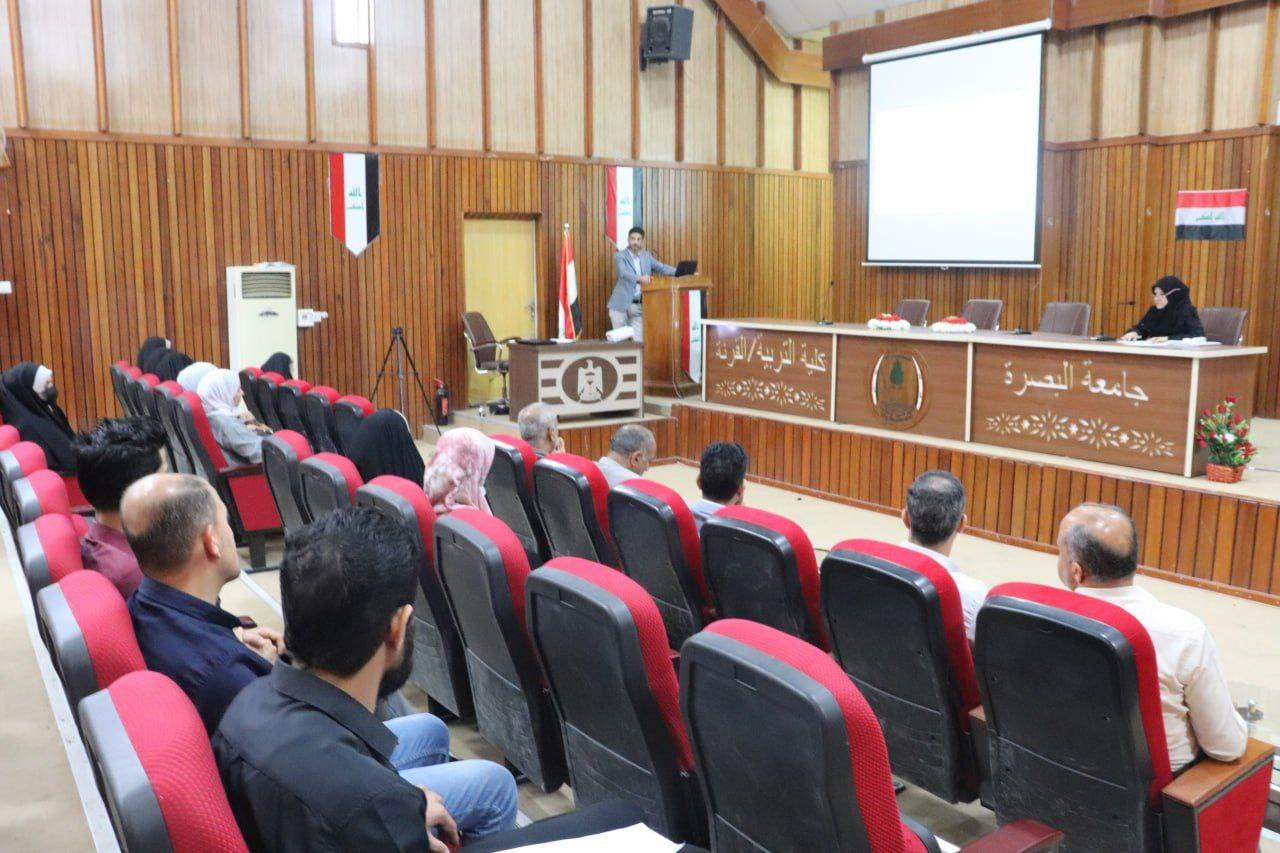 نظمت كلية التربية القرنه في جامعة البصرة محاضرة حول التخليق الحيوي لدقائق الفضة النانويه بأستخدام بعض انواع فطريات التربه ودراسة تأثيرها ضد ميكروبي تجاه بعض الانواع البكتيريه متعددة المقاومة للمضادات الحيويه