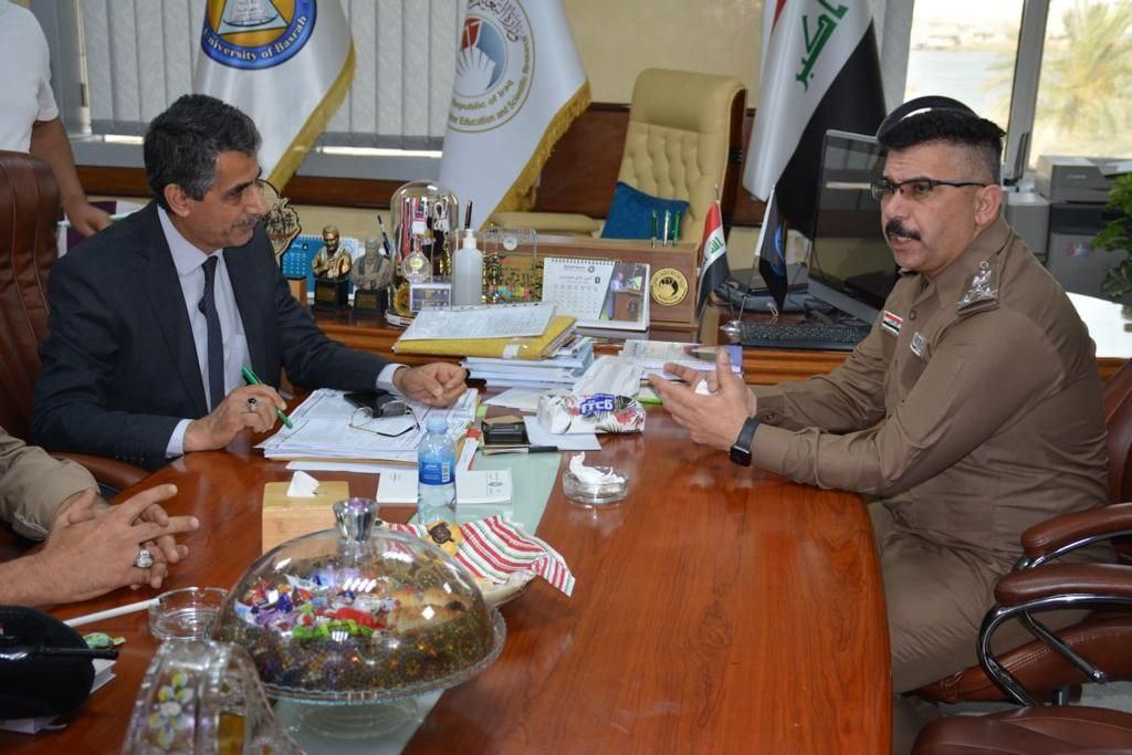 وبحث الطرفان توجيهات دولة رئيس الوزراء ومعالي وزير الداخلية حول تنظيم ورشات توعوية في الكليات بالتنسيق مع قسم العلاقات العامة والاعلام برئاسة جامعة البصرة عن المخدرات وآثارها السلبية على الانسان من الناحية الصحية والنفسية والجسدية والموقف القانوني من تلك الظواهر وما يترتب عليها من ضرر على الأمن المجتمعي وحقوق الانسان للافراد والمجتمعات.