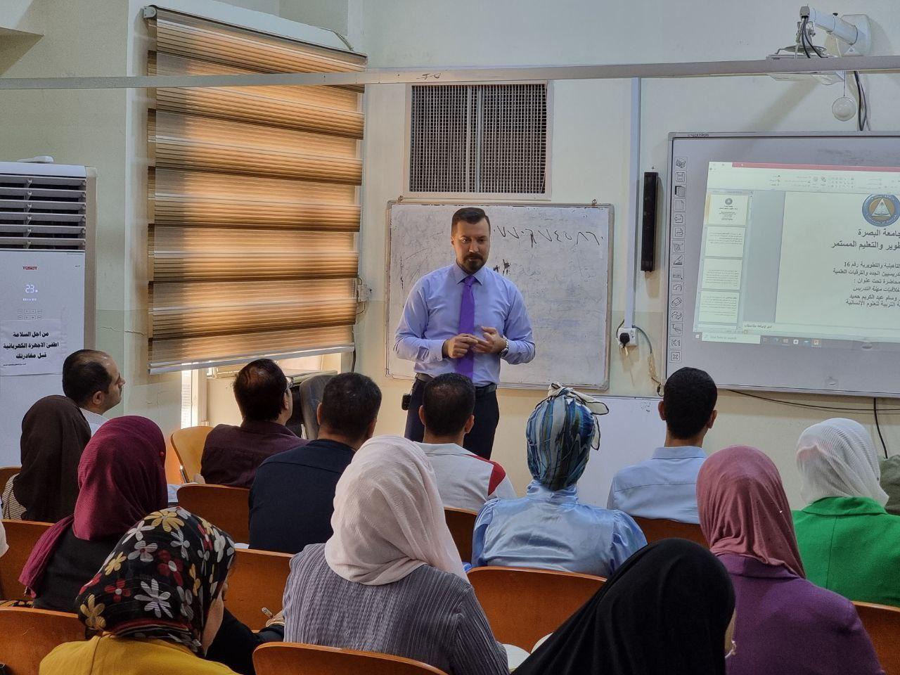 نظم مركز التطوير والتعليم المستمر في جامعة البصرة محاضرة عن اخلاقيات مهنة التدريس عبر الانترنت .