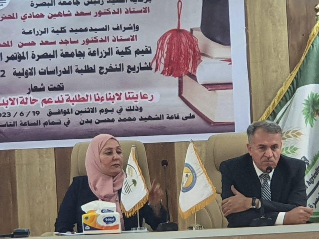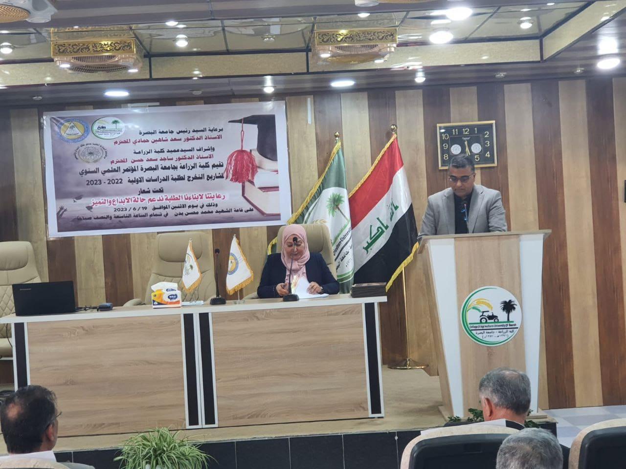 اقامت كلية الزراعة بجامعة البصرة مؤتمرها السنوي الخاص بمناقشة بحوث التخرج لطلبة المرحلة الرابعة تحت عنوان رعايتنا لابناءنا الطلبة ندعم حالة الابداع والتميز