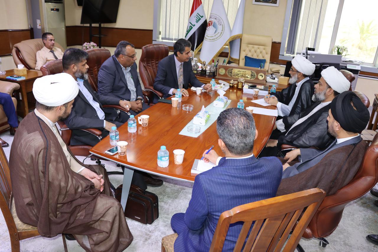 وكرم الوفد الزائر رئيس جامعة البصرة لجهودة المبذولة في رفع المستوى العلمي والبحثي وترسيخ التعاليم الدينية السمحاء.
